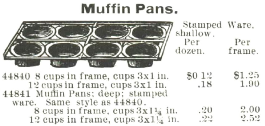 Προς το τέλος του 19ου αι. κάνουν την εμφάνισή τους τα ταψιά με θήκες (muffin pans) και τα muffins όπως τα ξέρουμε γεννιούνται. Το 1881 η Maria Parloa στο μαγειρικό της βιβλίο δημοσιεύει σχεδόν αυτούσια τη συνταγή της Cornelius, με σημαντικά αυξημένη τη ζάχαρη (από μια κουταλιά της σούπας σε μισή κούπα). Η βασική καινοτομία, όμως, ήταν ότι τα έψηνε σε ένα ταψί από χυτοσίδηρο με ενωμένες θήκες και ήταν ενθουσιασμένη με την εφεύρεση αυτή. Η συγκεκριμένη συνταγή, στη μισή ποσότητα, παρέμεινε η βασική συνταγή για muffins στα αμερικάνικα βιβλία για τα επόμενα εκατό χρόνια.