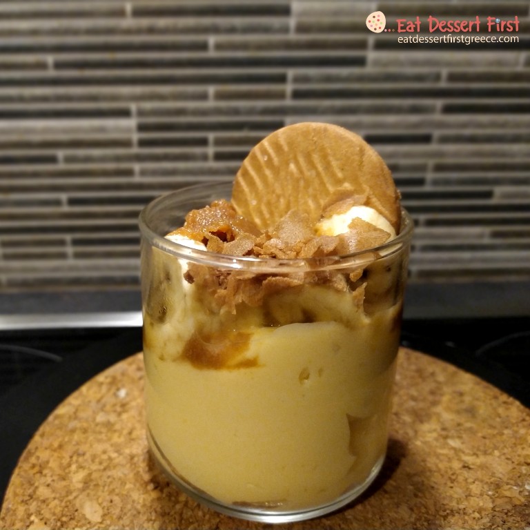 Because our sweet travel in time made us hungry, we used our pastry cream to create three different treats, one for each… One with pomegranate and kiwi, one with banana and caramel sauce and one extra large version, crepes with cream, quince spoon sweet, banana, chocolate and biscuits. They were all delicious!