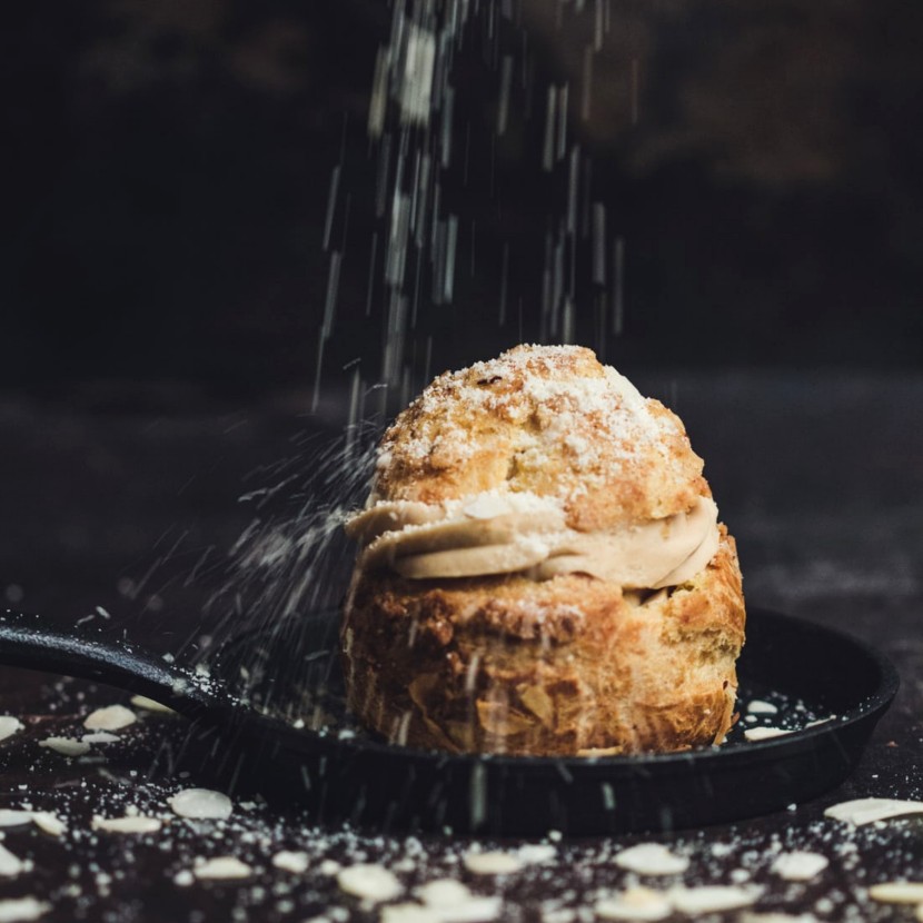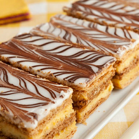 We can enrich pastry cream with a million things: vanilla, chocolate, coffee, caramel, nut paste, liqueur, aromas, herbs, spices, extracts, fruit and much more. Because it is quite thick, it keeps its shape and doesn’t soak doughs. It is used in a variety of desserts from tarts and pies to cream puffs, eclairs and Napoleons (millefeuilles).