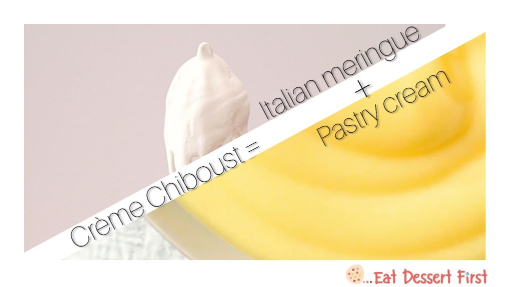 The ratio for making a Chiboust cream is 2 parts pastry cream and 1 or 2 parts of Italian meringue. Find how to make Italian meringue in our first ever article.