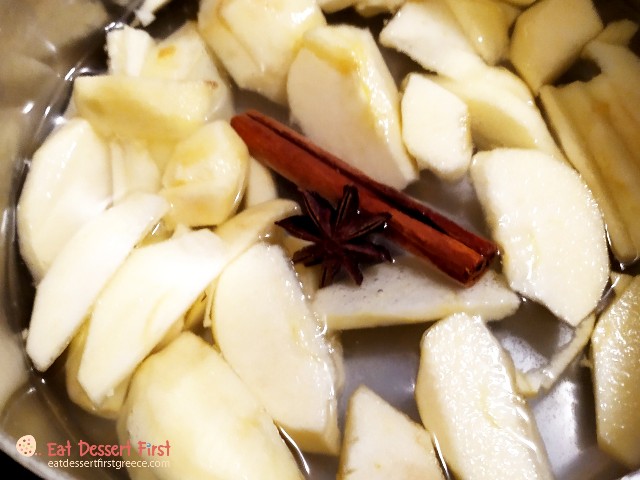 Βάζουμε τη ζελατίνη σε ένα μπωλάκι με λίγο νερό να φουσκώσει. Ξεφλουδίζουμε και κόβουμε τα μήλα σε κομμάτια. Τα βάζουμε σε κατσαρολάκι να βράσουν με το νερό, την κανέλα και το γλυκάνισο για 10 λεπτά ή μέχρι να μαλακώσουν. Αφαιρούμε την κανέλα και το γλυκάνισο και πολτοποιούμε μαζί με το νερό με το μπλέντερ χειρός (ή στο μπλέντερ ή με ένα πιρούνι αν δεν έχουμε). Προσθέτουμε τη ζελατίνη και ανακατεύουμε καλά να διαλυθεί.