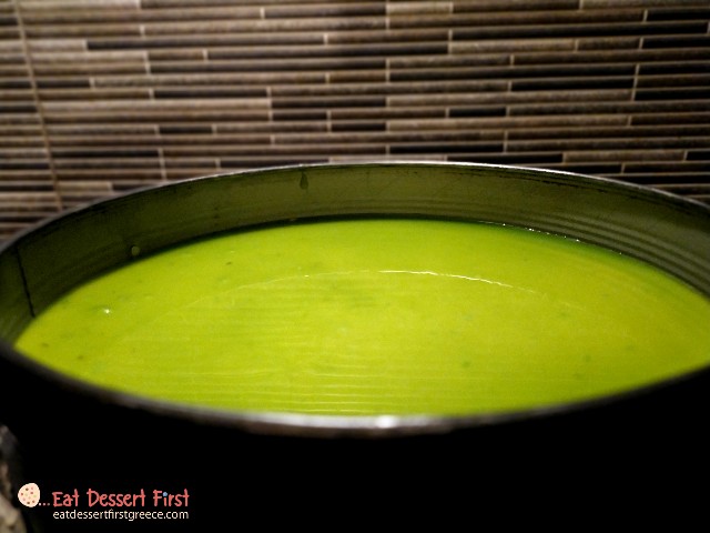 Βάζουμε τη ζελατίνη με λίγο νερό σε ένα μπωλάκι να φουσκώσει. Φτιάχνουμε μια κρέμα πατισερί όπως περιγράφουμε εδώ. Όσο είναι ζεστή προσθέτουμε τη ζελατίνη και ανακατεύουμε καλά να διαλυθεί. Βάζουμε την κρέμα στην κατάψυξη για μισή ώρα τουλάχιστον, μέχρι να φτάσει σε θερμοκρασία δωματίου. Τότε διπλώνουμε μέσα στην κρέμα πατισερί τη χτυπημένη κρέμα γάλακτος και ρίχνουμε το μείγμα στη φόρμα μας, πάνω από τη στρώση με το πράσινο ζελέ. Τοποθετούμε στο ψυγείο να παγώσει για πολλές ώρες, μέχρι να σταθεροποιηθεί.