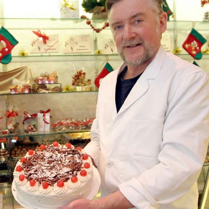 Βlack Forest στα χέρια του Claus Schaefer, ο οποίος ισχυρίζεται πως έχει κληρονομήσει την αυθεντική συνταγή από τον δημιουργό της τούρτας Josef Keller (πηγή)