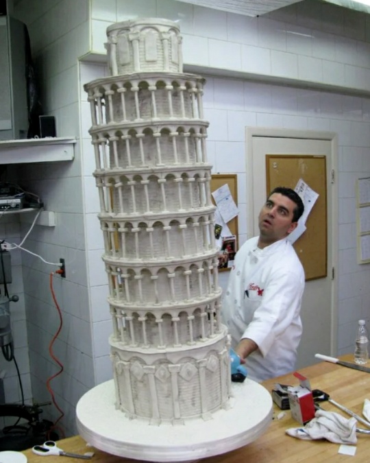 Ο Cake Boss με τον Πύργο της Πίζας σε τούρτα με ζαχαρόπαστα (πηγή)