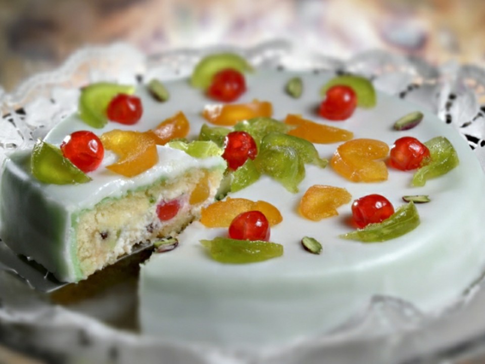 Cassata φτιαγμένη με την παραδοσιακή συνταγή με ρικότα, βανίλια, άχνη, κανέλα και ζαχαρωμένα φρούτα, από το ζαχαροπλαστείο Nevaroli στη Σικελία (πηγή)