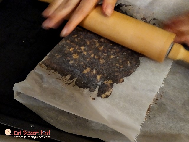 Αφαιρούμε την πάνω λαδόκολλα και ψήνουμε σε προθερμασμένο φούρνο στους 160°C για 12-15 λεπτά, μέχρι να γίνει τραγανό. Όταν κρυώσει το θριμματίζουμε σε κομμάτια. Διατηρείται για πολλές μέρες σε κλειστό δοχείο σε θερμοκρασία δωματίου και μπορεί να χρησιμοποιηθεί σε ό,τι φανταστείτε!