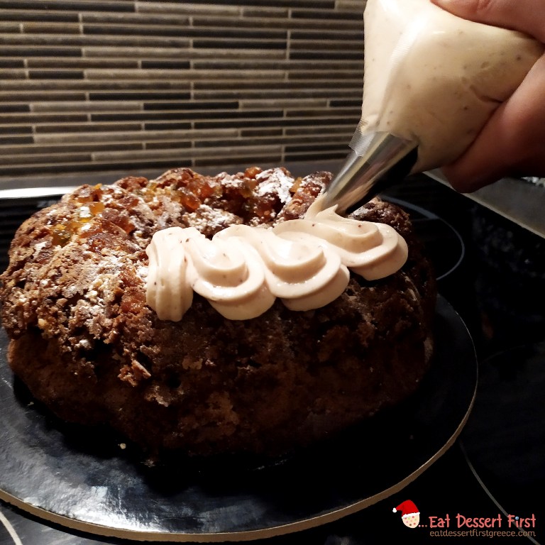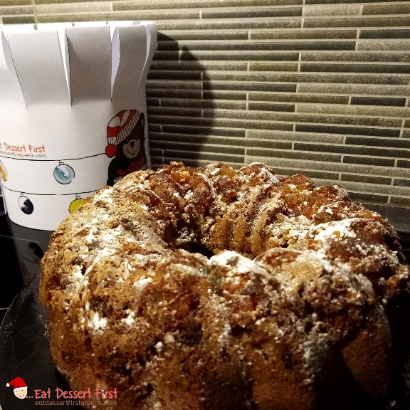 Το κέικ αυτό το φτιάχνουμε κάθε χρόνο τα Χριστούγεννα για την κ. Εύα με αγάπη! Είναι επίσης μια ωραία συνταγή για βασιλόπιτα… Αν την επιλέξετε, βάλτε όλα τα υλικά σε διπλή ποσότητα για να βγει πιο μεγάλο!