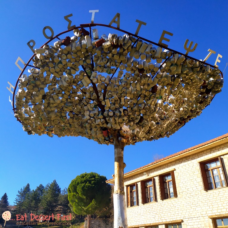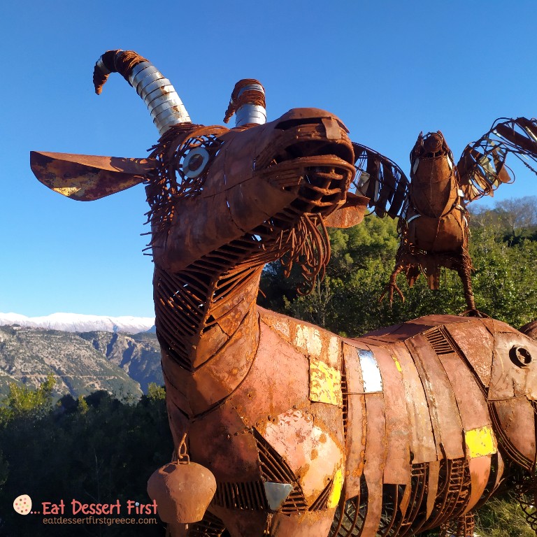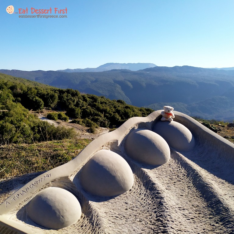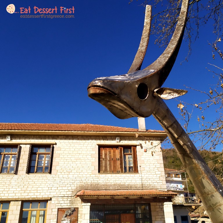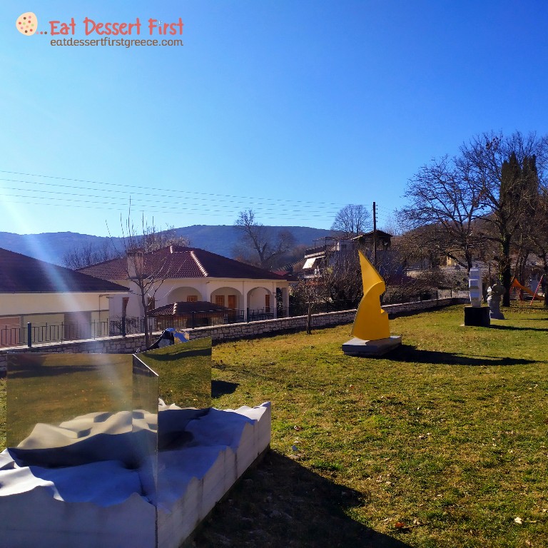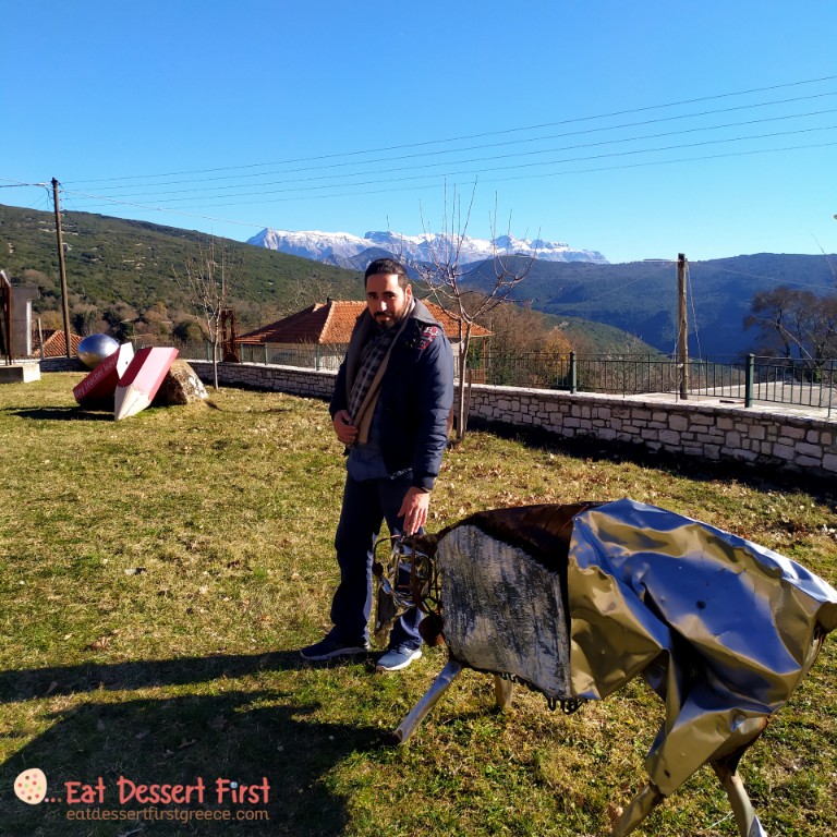 We filled our batteries with energy and headed towards Elliniko village in Northern Tzoumerka. In this quiet, mountainous village, in a serene environment with a majestic view to Tzoumerka mountains, there is a contemporary art museum. Did you expect that? It is the “Theodoros Papagiannis” Museum of Contemporary Art. On the road to the village, we saw sculptures emerging in our way…