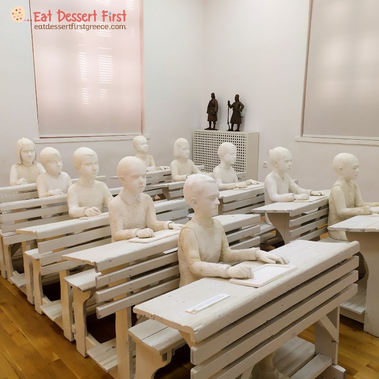 We told Mr. Patsiouras that we had visited the Papagiannis museum and he told us that he went to school there as a kid. He told us that the school was built in 1936 by benefactor Mantelopoulos and it was spacious, airy and sunny.