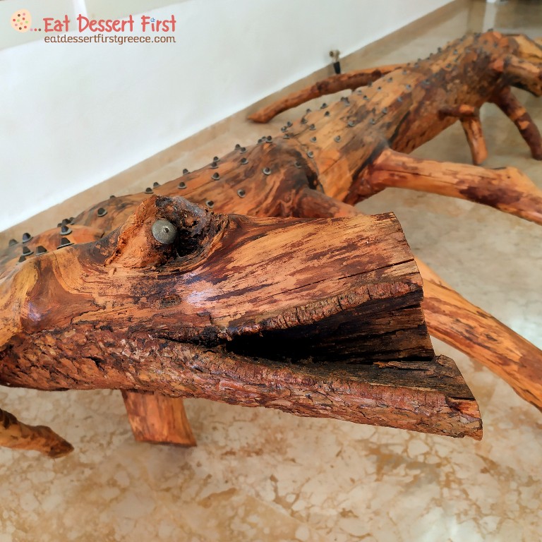 At the entrance of the museum we saw a work of art that made an impressiοn on us, because of the eco message it conveys. It was the “dragon that eats those who cut the trees”.