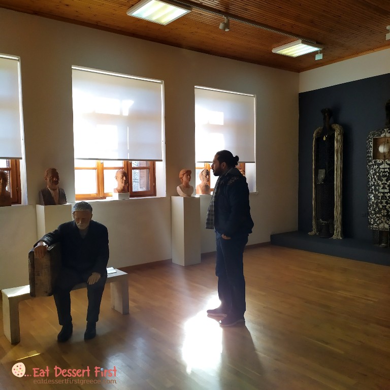 We went up to the first floor and met the museum manager Niki Giannatsi. Of course we asked her to talk to us about the museum. She told us that downstairs operates regularly a school with six students and that the second floor was closed for many years until Papagiannis decided to donate his works, wanting to give life back to the old, stonebuilt building.