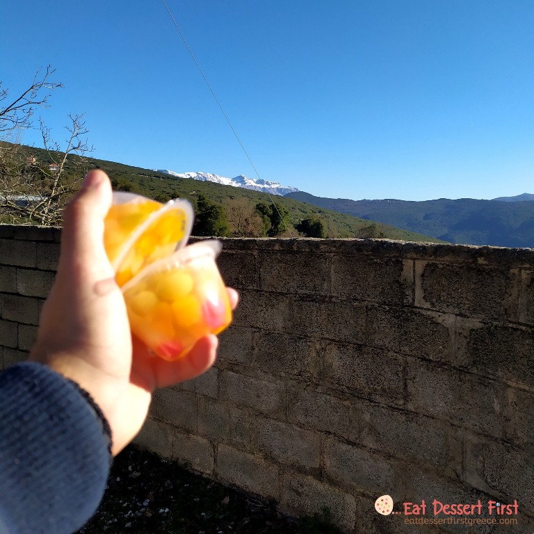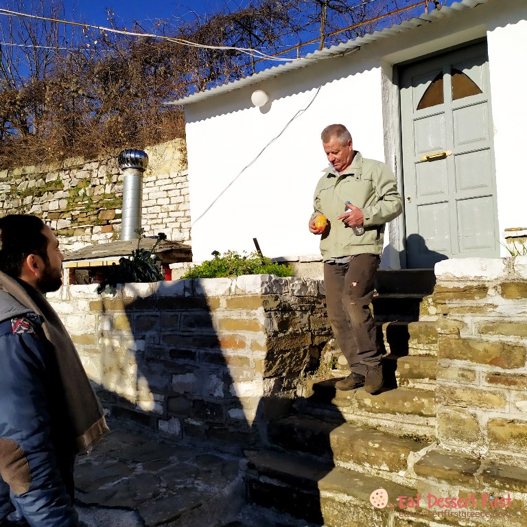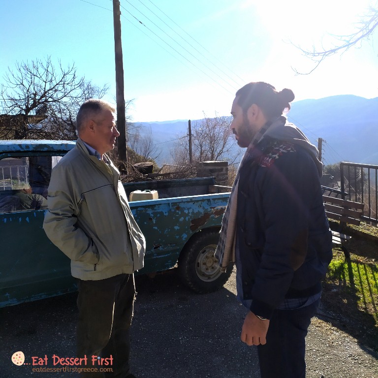 The kindness and friendliness Mr. Patsiouras treated us with moved us and showed us how life in quiet places can make you more serene and happy. We thank him from our hearts for the sweet talk, and also for the local tsipouro (alcohol drink) and fruit compotes he gave us!
