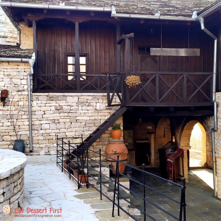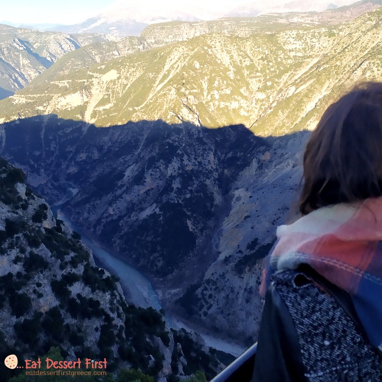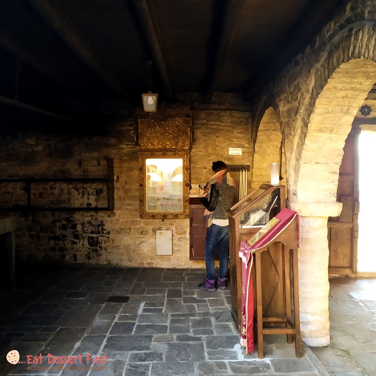 At the back side of the monastery there is a balcony. We got closer and saw a breathtaking view of Arachthos gorge, with a depth of 470 meters. The out-of-this-world view, along with the absolute quietness create a unique feeling that truly rewards the trouble of going uphill until the monastery.