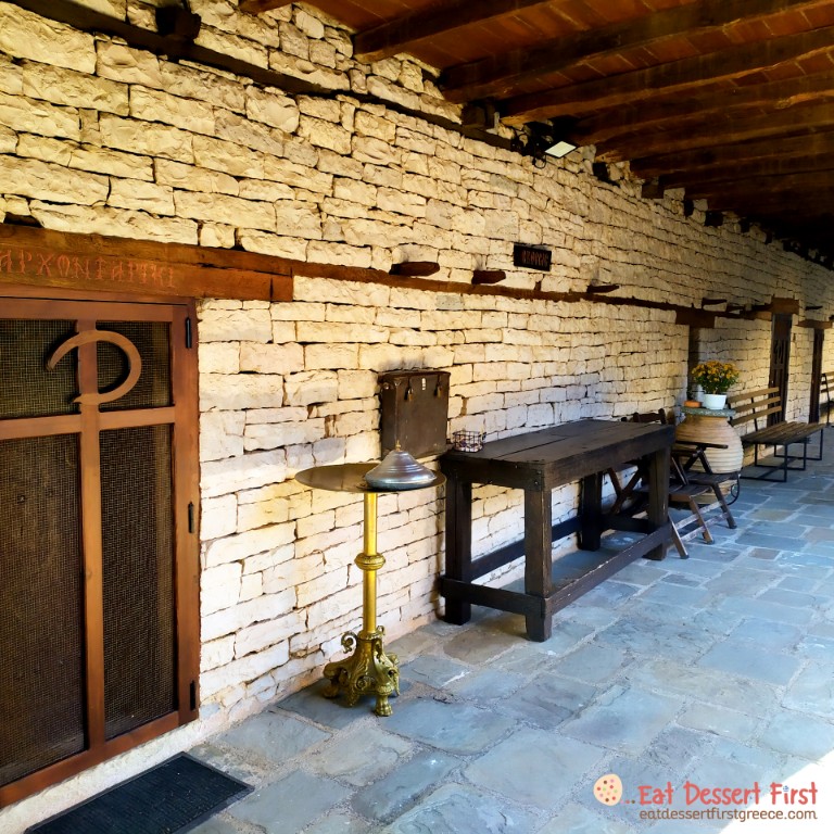 The hiking trail starts at the museum and ends at the Holy Monastery of Panagia Tsoukas. Ms. Giannatsi told us that tsouka means mountain top and that the monastery was named like that because it stands at the end of the trail. So, we started our hike according to our motto “Be fit to eat sweet” with the aim of reaching the monastery, at the highest point of the trail.