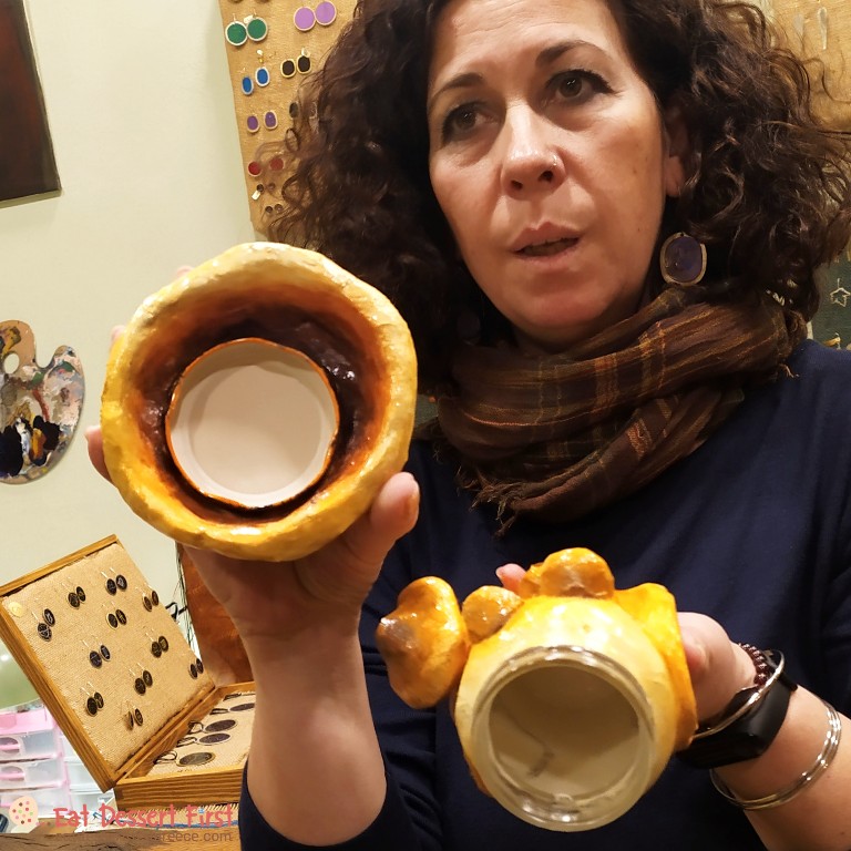 Stavroula also makes handmade “Tilda” dolls. This started when she obtained at the same time many nephews and she wanted to bring them handmade gifts. To make the dolls, she draws the pattern on textile and fills the bodies with wadding. Stavroula showed us amazing photos of the dolls in various places of the city by photographer Menelaos Sykovelis.