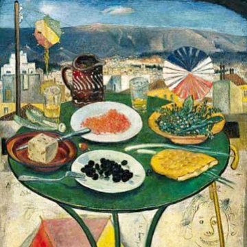 Το τραπέζι της Καθαράς Δευτέρας, Σπύρος Βασιλείου, 1950 (λεπτομέρεια) (πηγή)