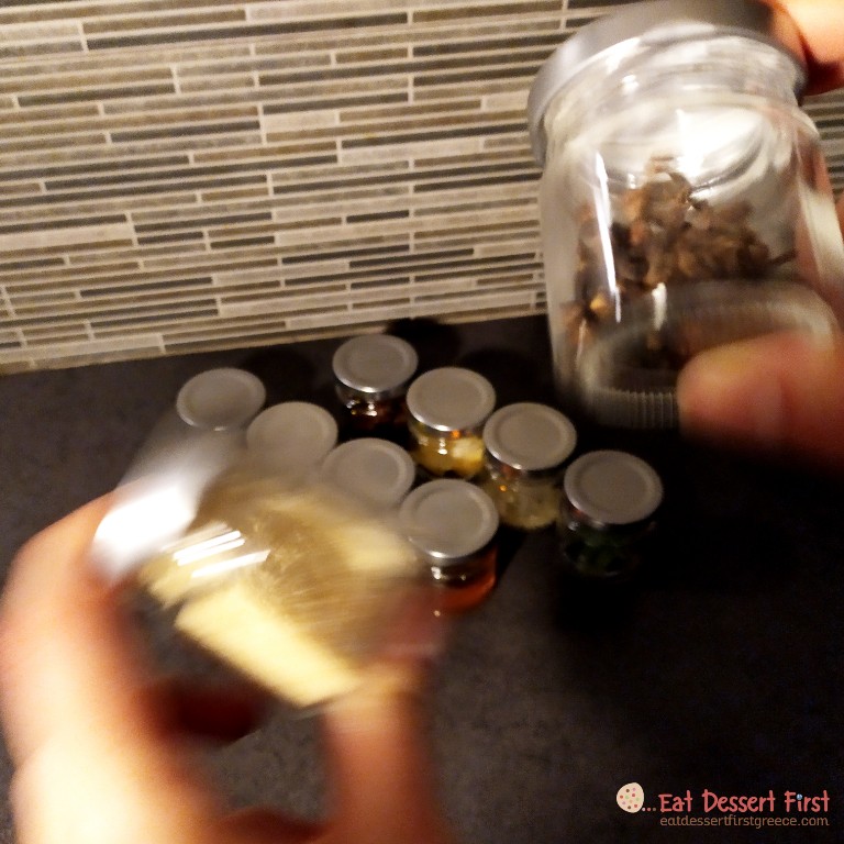 Ο κατάλογος δεν τελειώνει, μπορούμε ακόμα να βάλουμε ξηρούς καρπούς, ανθόνερο, ροδόνερο, μαχλέπι, σουσάμι, μοσχοκάρυδο… Επειδή όμως με τα πολύχρωμα βαζάκια όπως μπορείτε να φανταστείτε σε ένα νηπιαγωγείο θα γίνει χαμός, καλό είναι να περιοριστούμε σε μια διαχειρίσιμη ποσότητα…