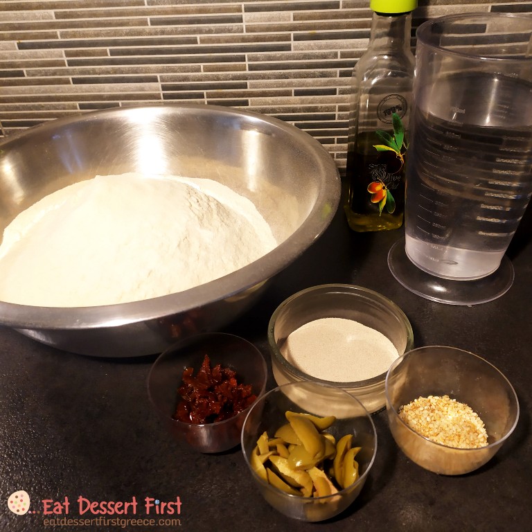 *Οι ποσότητες της ελιάς και της λιαστής ντομάτας είναι ίσα για να αρωματίσουν το ψωμάκι μας. Αν θέλετε περισσότερη γεύση, απλώς αυξήστε την ποσότητα!