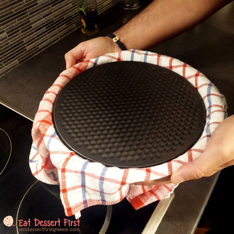 Κλείνουμε το ζυμάρι μας καλά με μια πετσέτα για να φουσκώσει καλύτερα και να μην ξεραθεί.