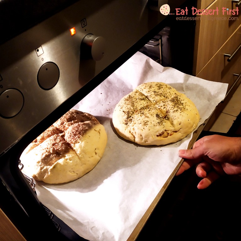 Θα ξεκινήσουμε με τη συνταγή μας για μυρωδάτο σπιτικό ψωμάκι, σε δύο εκδοχές, μια με ελιές και σουσάμι και μία με λιαστές ντομάτες και ρίγανη. Αλλά μετά μην φύγετε, ακολουθεί ένα μικρό ταξίδι στο χρόνο, με στάσεις στην προϊστορική εποχή, την Αρχαιότητα και τους φούρνους της γειτονιάς των σύγχρονων χρόνων, μαζί με επαγγελματικά μυστικά για τη σωστή παρασκευή του ψωμιού. Ετοιμαστείτε για ζύμωμα λοιπόν!
