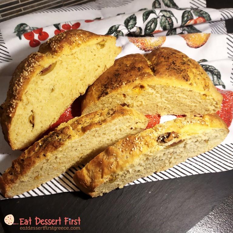 Σπιτικό ψωμάκι με ελιές και λιαστή ντομάτα
