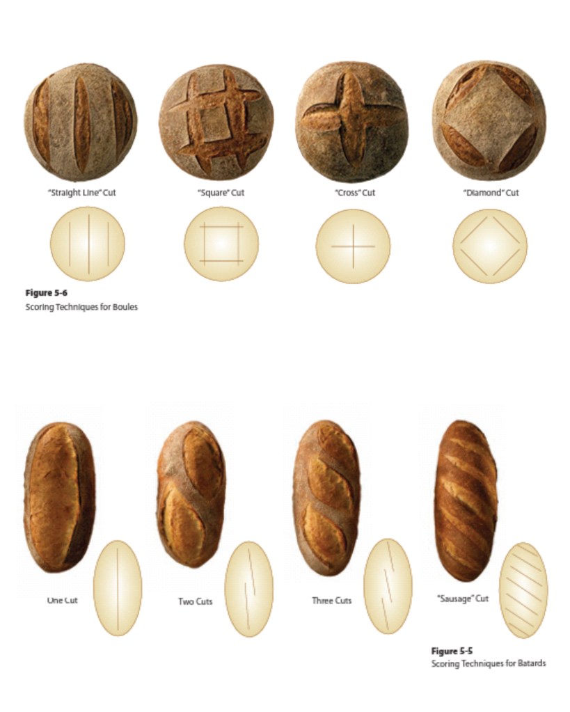 Πώς χαράσσουμε το καρβέλι και πώς την φρατζόλα. Από το βιβλίο του Michael Suas Advanced Bread and Pastry (2009).