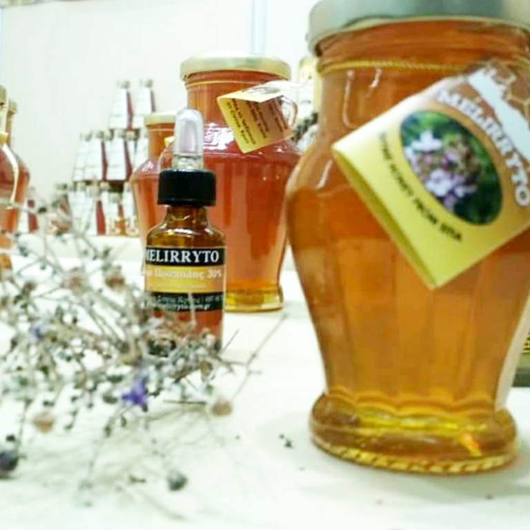 Η εταιρεία Κοντολαιμάκης στον Άγιο Νικόλαο Λασιθίου παράγει το κρητικό θυμαρίσιο μέλι “Melirryto” από θυμαρότοπους της Σητείας.