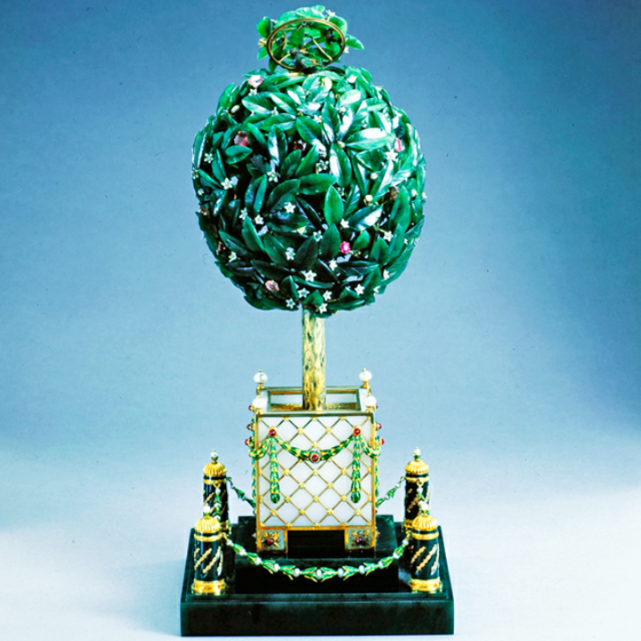Το δέντρο περιέχει 325 φύλλα νεφρίτη, 110 λευκά λουλούδια σμάλτου, 25 διαμάντια, 20 ρουμπίνια, 53 μαργαριτάρια, 219 διαμάντια και ένα μεγάλο διαμάντι. Περιέχει επίσης αυτοματισμό που όταν ενεργοποιηθεί, εμφανίζεται ένα πουλί που κουνάει τα φτερά του, στρίβει το κεφάλι του, ανοίγει το ράμφος του και τραγουδάει! (πηγή)