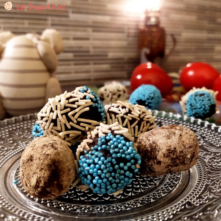 Θέλοντας κι εμείς να φτιάξουμε τα δικά μας σοκολατένια αυγά, βρεθήκαμε μπροστά σε ένα πρόβλημα. Δεν είχαμε καλούπια σε σχήμα αυγού στο σπίτι… Σκεφτήκαμε λοιπόν να κινηθούμε με τον πρωτόγονο τρόπο και να φτιάξουμε συμπαγή αυγουλάκια από μείγμα για σοκολατένιες τρούφες, τρουφαυγουλάκια δηλαδή! Άλλωστε, ένα συμπαγές αυγό έχει περισσότερη λαχταριστή σοκολάτα από ένα κούφιο, οπότε μόνο κερδισμένοι θα βγούμε!