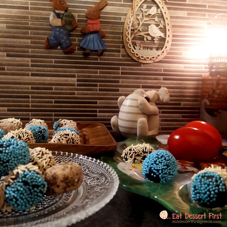Η Μεγάλη Εβδομάδα έφτασε στο τέλος της και λίγο πριν αναστηθεί ο Χριστός στις καρδιές μας, ετοιμάζουμε τα σπίτια μας για να Τον υποδεχτούμε, ακόμα κι αν είμαστε ο καθένας στο δικό του σπίτι αυτή τη χρονιά… Φέτος όπως κάθε χρονιά θα τσουγκρίσουμε τα αυγά μας, ακόμα κι αν είναι μέσα από την οθόνη του κινητού ή του υπολογιστή μας… Επομένως, στο Πασχαλινό μας άρθρο θα μιλήσουμε για τα κόκκινα, αλλά και τα πασχαλινά σοκολατένια αυγά, θα μάθουμε τους συμβολισμούς και την ιστορία τους και θα φτιάξουμε τρουφαυγουλάκια με γκανάζ σοκολάτας, μπισκότα, μέλι και σουμάδα!