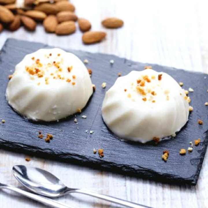 The mixture for making panna cotta is liquid and it takes the form of the mould it sets in. This way it can get infinite shapes and designs, depending on the mould we will use. This is another panna cotta’s quality that intrigues contemporary pastry!