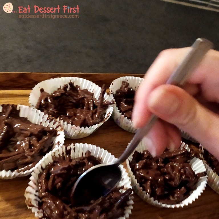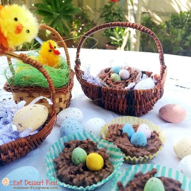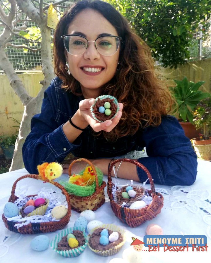 Our friend, architect Anastasia Vasileiou (Instagram) from Cyprus gave us such an idea. She suggested making bird nests with chocolate and bran sticks, like the ones she had prepared for Easter.