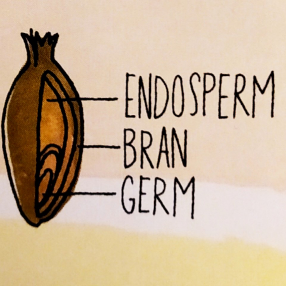 The wheat grain. The outer layer of the grain is called bran, which bran sticks are made of. From the book Food Anatomy (2016) by Julia Rothman.