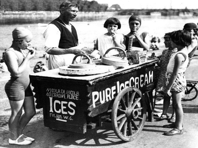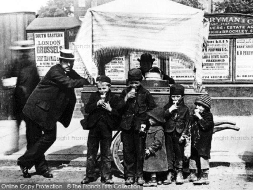 Στην πραγματικότητα, το όνομα hokey pokey διαβάσαμε πως χρησιμοποιούταν ευρέως τον 19ο και στις αρχές του 20ου αι. στη Μ. Βρετανία για να περιγράψει το παγωτό που πουλούσαν οι πωλητές του δρόμου ή hokey pokey men. Ο όρος καταγράφεται για πρώτη φορά στο Ηνωμένο Βασίλειο το 1884 και στις ανατολικές ΗΠΑ το 1886.