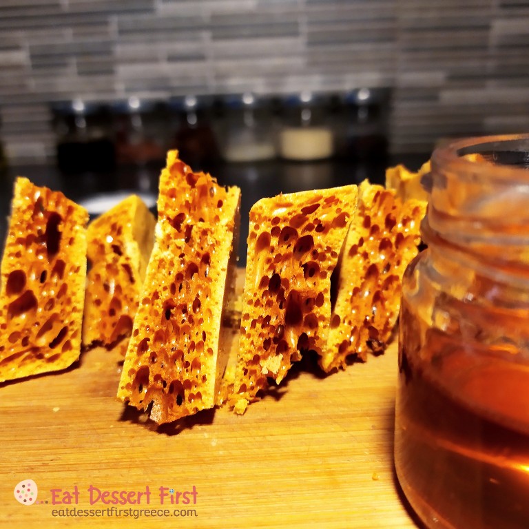 Το γλύκισμα αυτό κυκλοφορεί με διάφορα ονόματα… Άλλοι το ονομάζουν honeycomb, άλλοι hokey pokey, άλλοι cinder toffee… και άλλες πολλές ονομασίες και εκδοχές που θα δούμε αναλυτικά στη συνέχεια. Εμείς στο νέο, μελένιο μας άρθρο θα το πούμε honeycomb, που στα Αγγλικά σημαίνει κηρήθρα, επειδή αυτό μας ταιριάζει περισσότερο! Θα μάθουμε τί είναι το honeycomb, θα δούμε τα ονόματα και τις εκδοχές του σε όλο τον κόσμο, θα ξεδιαλύνουμε τη μαγεία πίσω από την παρασκευή του και θα φτιάξουμε το δικό μας honeycomb με μέλι έλατου, σε δύο παραλλαγές, με φρέσκια ρίγανη και με σοκολάτα και ανθό αλατιού.