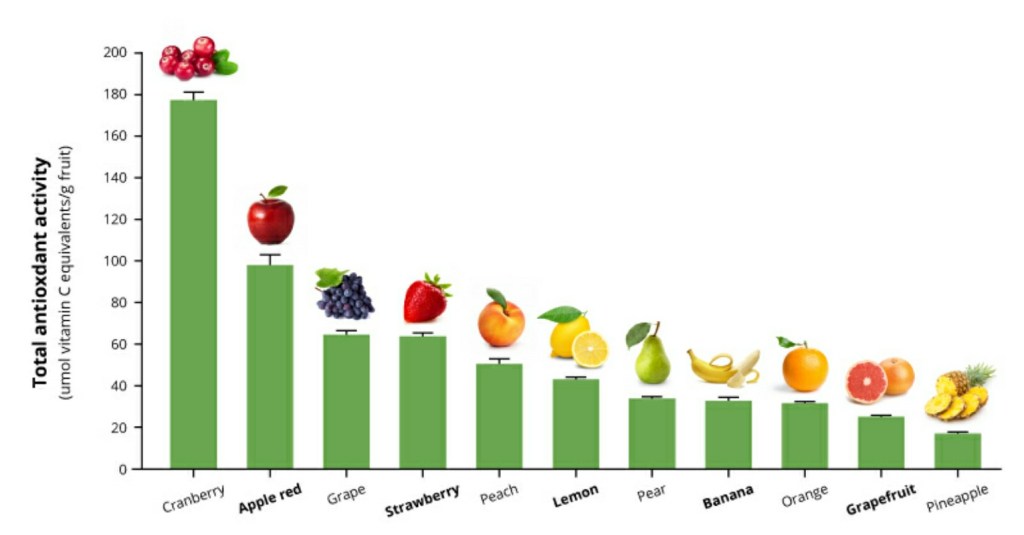 Κατάταξη των φρούτων σε σχέση με την αντιοξειδωτική τους δράση (πηγή)