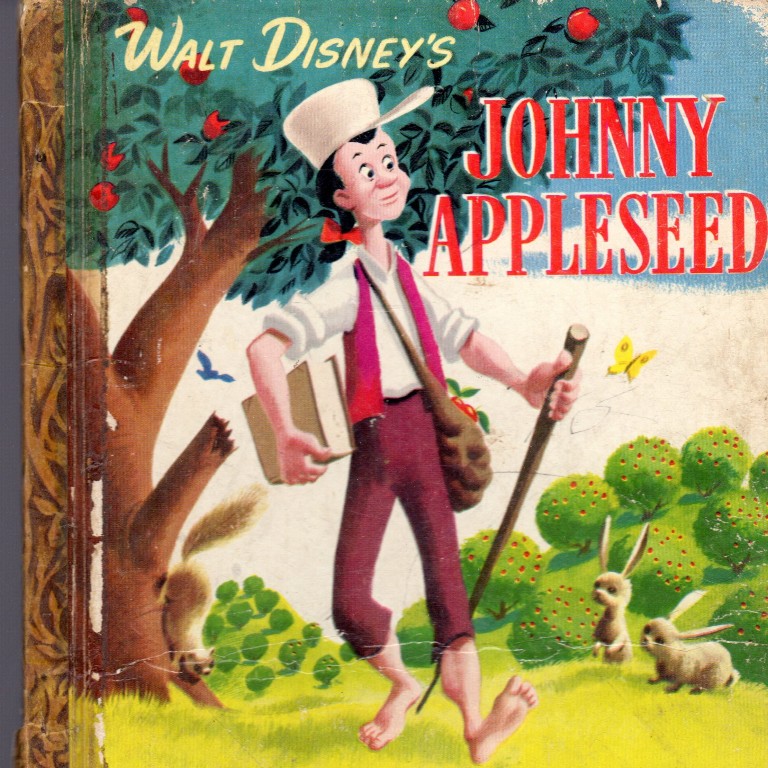 O Johny Appleseed έγινε ένας θρύλος στην Αμερική, αν και τα δέντρα που φύτεψε έδιναν καρπούς που δεν έμοιαζαν με τα λαχταριστά, κόκκινα μήλα που ξέρουμε! Στην εικόνα εξώφυλλο από παιδικό βιβλίο του Walt Disney του 1949 (πηγή)