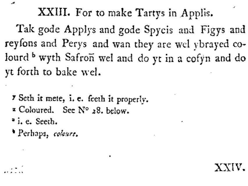 Η πρώτη συνταγή για apple pie του 1381 (πηγή)