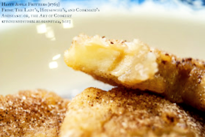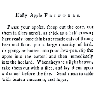 Συνταγή για apple fritters από το βιβλίο του 1769 The Lady’s, Housewife’s, and Cookmaid’s Assistant: or, the Art of Cookery (πηγή)