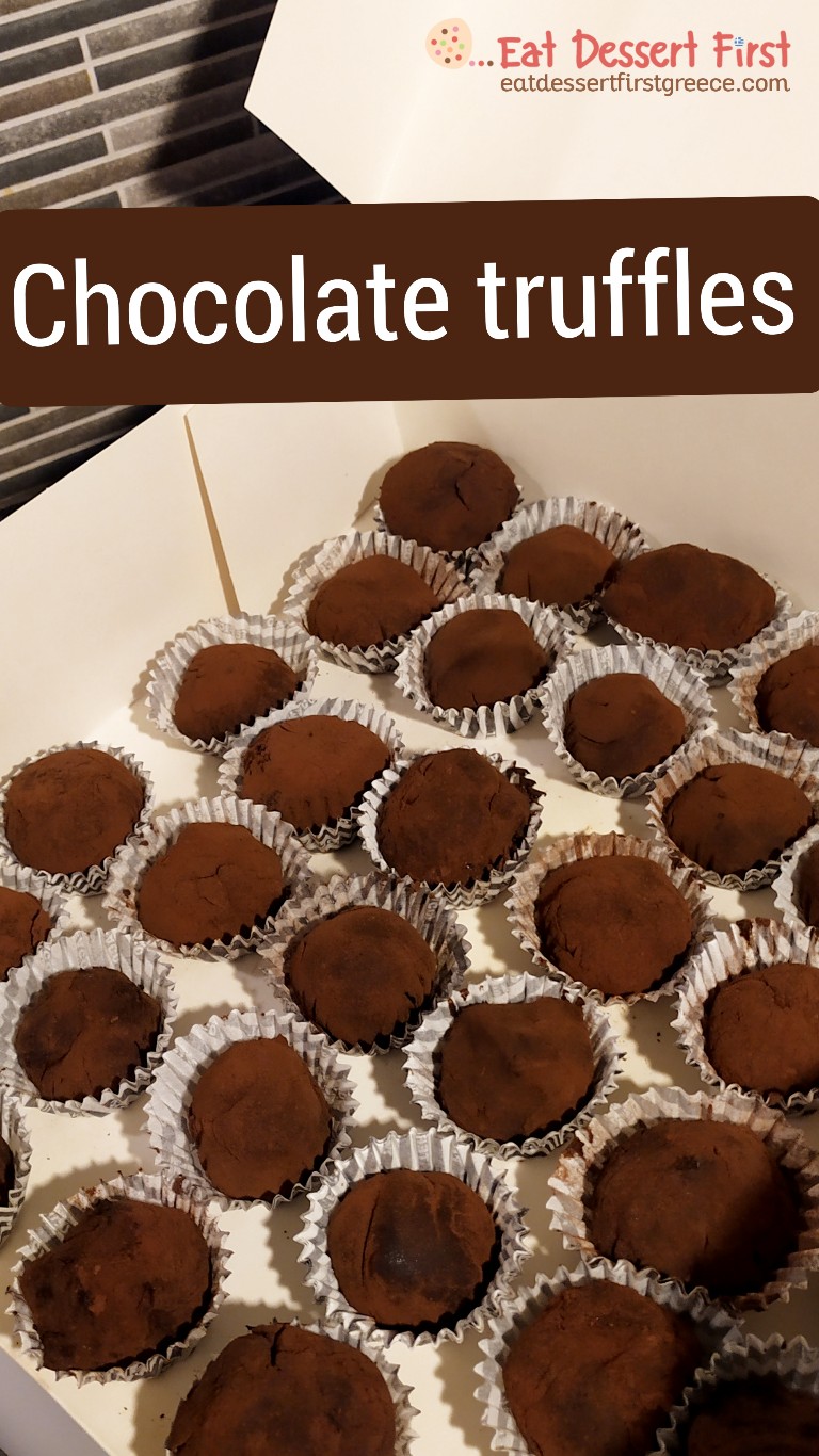 We found the recipe for the chocolate truffles in the very interesting book Δέκα by Potamos Publishers.