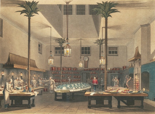 Ας την αφήσουμε, τώρα, να μας ταξιδέψει λίγο πιο παλιά, με όχημα το βιβλίο της και οδηγό τον Αντονίμ Καρέμ… Ας φτάσουμε στις κουζίνες του Βασιλικού Περιπτέρου του Μπράιτον, στις οποίες επικρατούσαν ιδανικές για την εποχή συνθήκες, τις οποίες εξασφάλισε ο σπουδαίος ζαχαροπλάστης Αντονίν Καρέμ το 1816 από τον πρίγκηπα της Ουαλίας και μετέπειτα Γεώργιο τον 4ο.