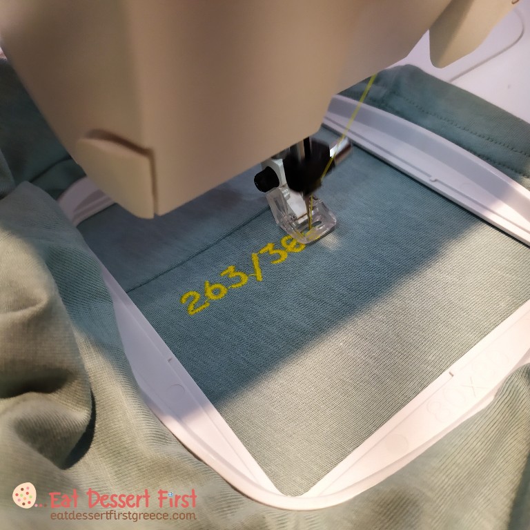 As Anna told us, the store has been around for three years and the exhibition for a year now. The owners are a couple who moved to Nafplio a few years ago. The t-shirts are distributed throughout Greece, but also abroad. Before we left, Anna showed us the state-of-the-art sewing machine which embroiders the numbering and the ancient mottos onto the T-shirts based on digital files. We confess that it impressed us!