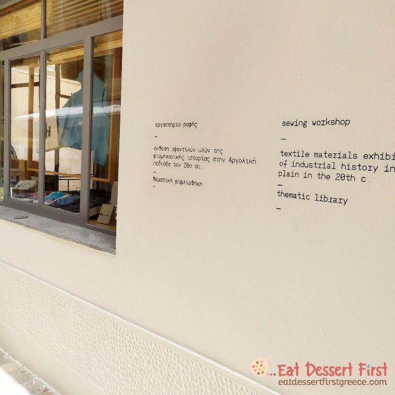 During our first walk we saw a store that attracted our interest, “Armiriki” and so we headed there. It is a store that makes t-shirts in front of customers, in a workshop-exhibition of textile materials of industrial history in the Argolic plain in the 20th century.