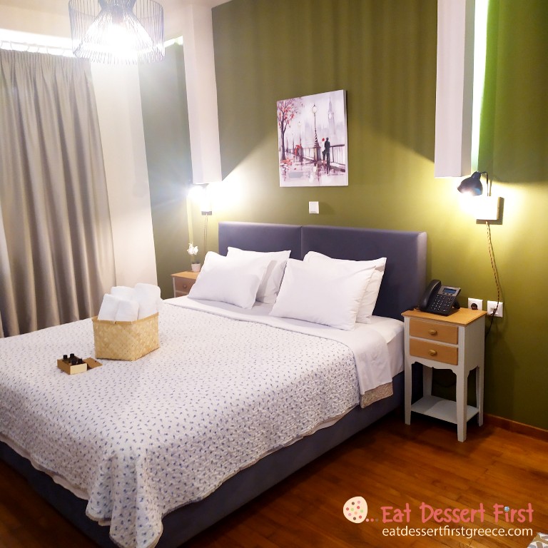 Στο ξενοδοχείο μας περίμενε ο ευγενικός ρεσεψιονίστ Μάκης, ο οποίος μας έδειξε το δωμάτιό μας και μας βοήθησε να ανεβάσουμε τα πράγματά μας. Το δωμάτιο μας ήταν στον δεύτερο όροφο, πεντακάθαρο και φωτεινό, με ωραία μίνιμαλ διακόσμηση, κρυφό φωτισμό στο ταβάνι, ένα όμορφο έργο τέχνης στον τοίχο και όλες τις ανέσεις, από κλιματισμό και ολοκαίνουριο mini bar έως σαπουνάκια, αντισηπτικά μαντηλάκια και πιστολάκι μαλλιών.