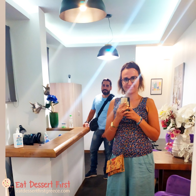 Στη ρεσεψιόν του ξενοδοχείου με τη γλυκύτατη και πολύ εξυπηρετική ρεσεψιονίστ Ντόρα.