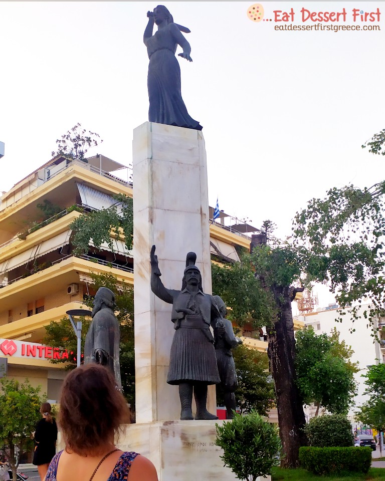 Η σύνθεση «Ελευθερία» με τους αγωνιστές της Επανάστασης Παπαφλέσσα, Κολοκοτρώνη και Μακρυγιάννη, φιλοτεχνημένη από τους γλύπτες Θεόδωρο Η. Κολοκοτρώνη και Αλίκη Μ. Χατζή το 1978.