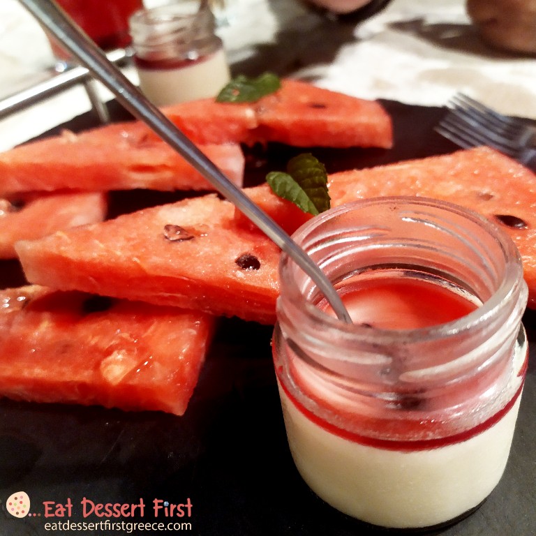 Κλείσαμε με καρπουζάκι, πανακότα και λικέρ μαστίχα από τον τοπικό παραγωγό Χριστόπουλο.