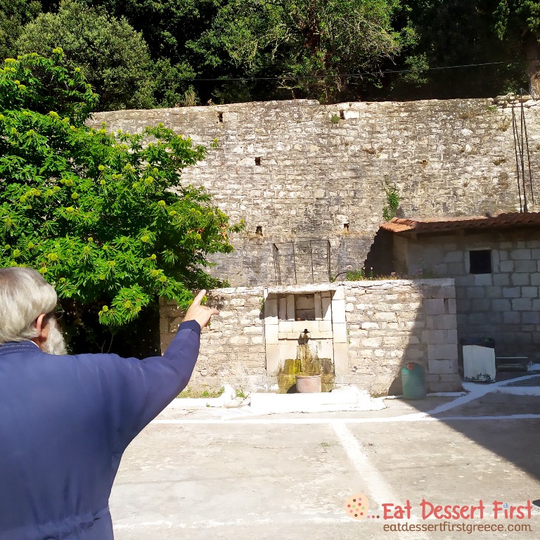Ο εφημέριος μας έδειξε την πηγή που τροφοδοτεί τη βρύση του μοναστηριού