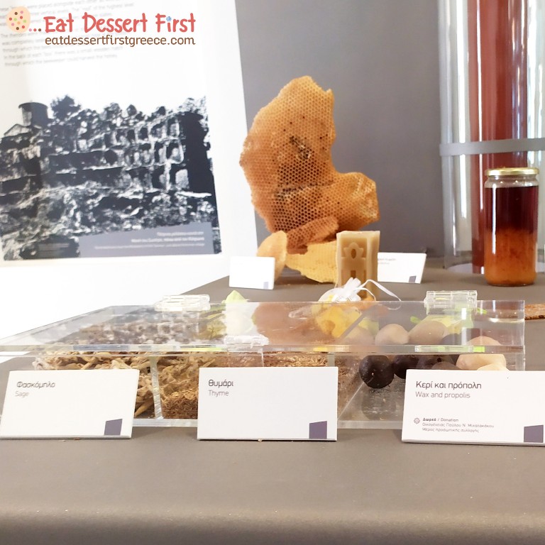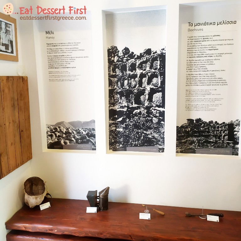 The stone was also used in beekeeping. Mrs. Vasiliki told us about the stone hives in which the bees made honey. The people of Mani had understood that the bees were concentrated in the hollows of the trees and in the crevices of the rocks, that is, in places protected from the extreme weather conditions and the hot sun. Based on this observation, as we read in the texts of the exhibition, the people of Mani made the stone square boxes and placed them next to each other.