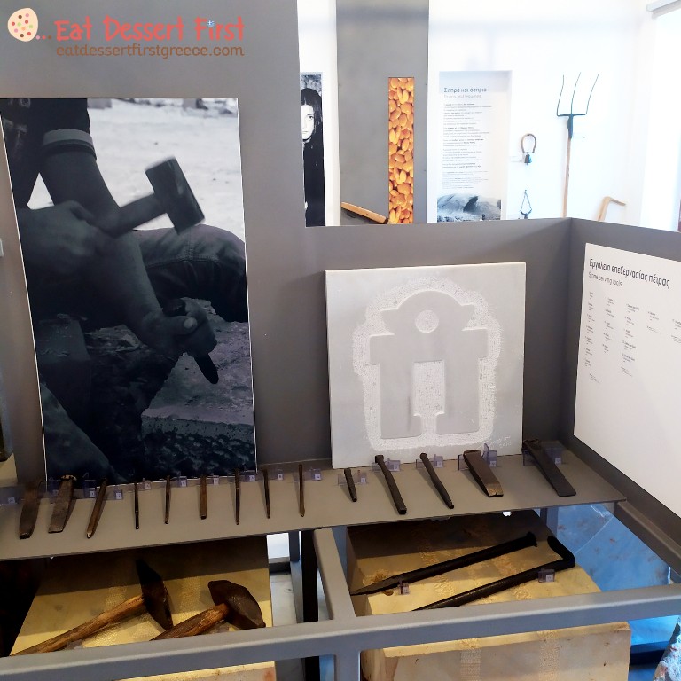 The people of Mani, Mrs. Vasiliki told us, dug deep into the ground and found white and red marble. They built churches, towers, walls with the stone. In the exhibition we will even see many old useful objects.